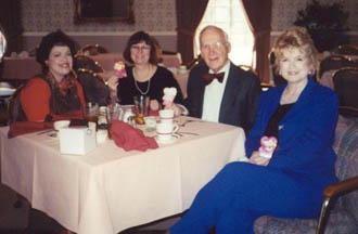 Seated at one of our luncheons are Mimi, a substitute reader, and three readers from Friday's group, Gail, Jim and Linda