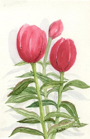 "Three Red Tulips"